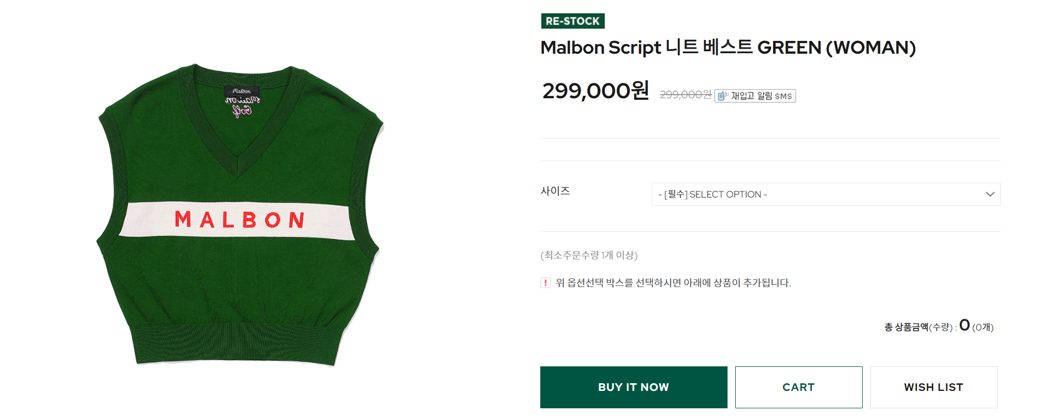 4위는 말본 스크립트 니트 베스트 입니다.이미 한국 공홈에서는 리스탁이 되며 계속품절과 재입고를 반복하는 제품 입니다.