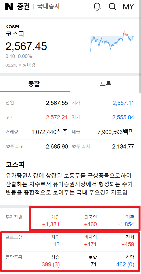 - 프로그램 매매가 매수(빨간색)가 많아야 좋음