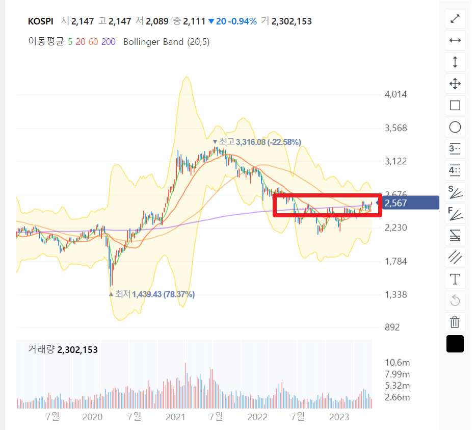 이는 일단 코스피가 확실하게 상승추세로 전환을
