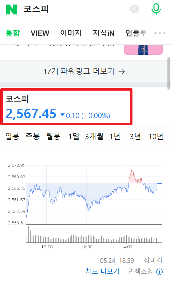 코스피 지수를 검색한 후 차트 더보기를