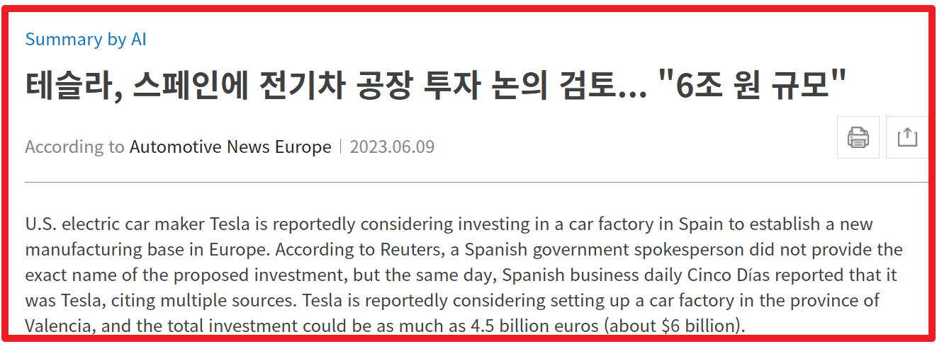 거기에 바로 테슬라가 스페인 공장 투자 소식까지나오면서 호재 + 호재로 엄청난 상승 추세를 이어가게 되었습니다. 개인적으로 아직 호재가 몇개 더 남아있는걸로 알고 있는데.. 대단합니다.