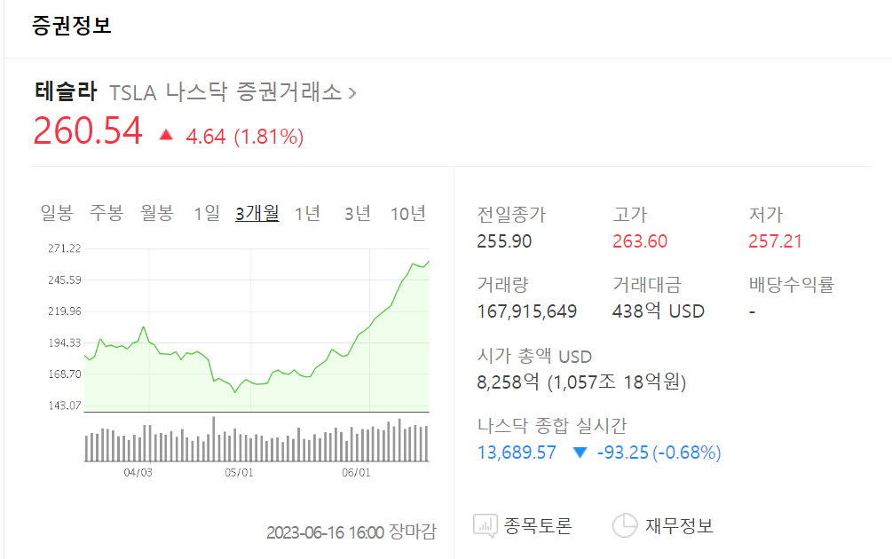공교롭게도 지금 글을 쓰고 있는 06/18 기준주가입니다. 260.54 달러인 상황인데요.